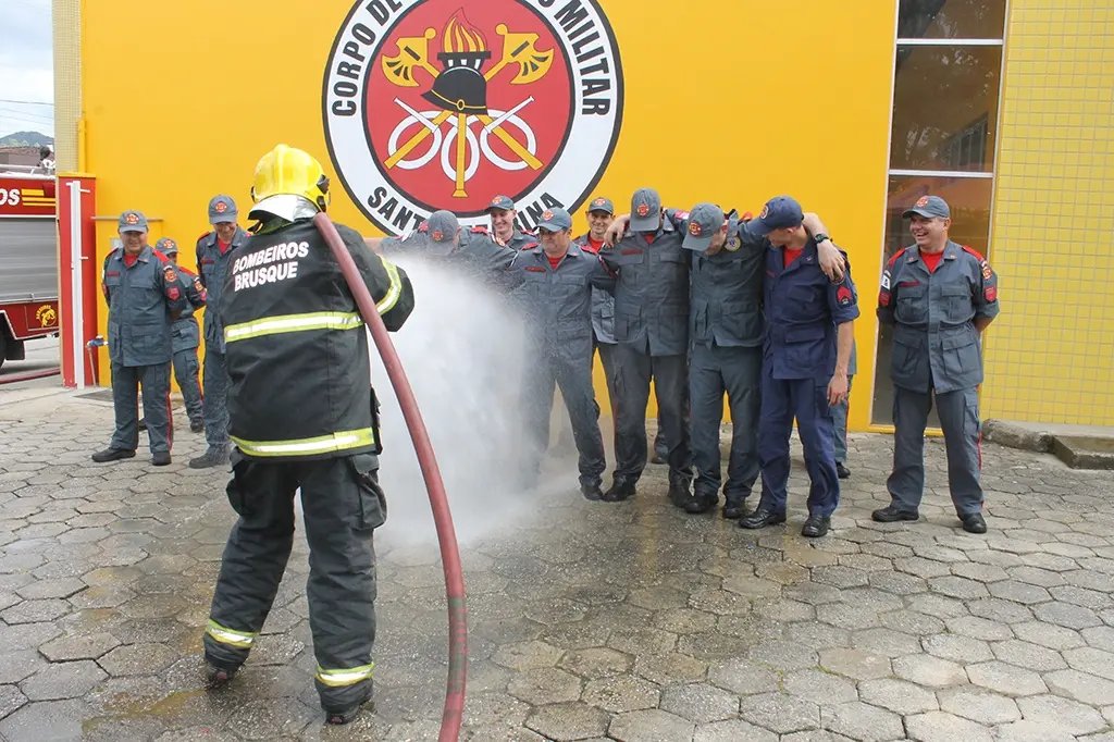 A cerimônia serviu ainda para homenagear personalidades brusquenses com a medalha comemorativa dos 90 anos do Corpo de Bombeiros. Também ocorreu a promoção de bombeiros voluntários que ao final da cerimônia receberam o tradicional batismo.