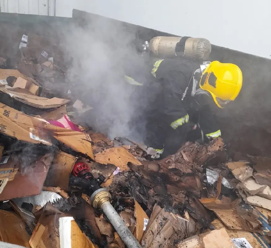 No local a guarnição constatou que o incêndio estava acontecendo em uma caçamba de reciclagem que tinha papelão e plástico dentro. Os funcionários já estavam fazendo o combate das chamas, com a chegada dos bombeiros eles seguiram o trabalho que durou aproximadamente 1h30. Foram utilizados em torno de dois mil litros de água transportada e mais seis mil da empresa.