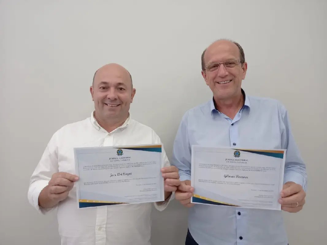 O prefeito e vice-prefeito eleitos de Brusque, Ari Vequi e Gilmar Doerner, foram oficialmente diplomados na tarde desta quinta-feira (17). Por conta da pandemia não houve cerimonia na Justiça Eleitoral, sendo que o documento foi disponibilizado para impressão.