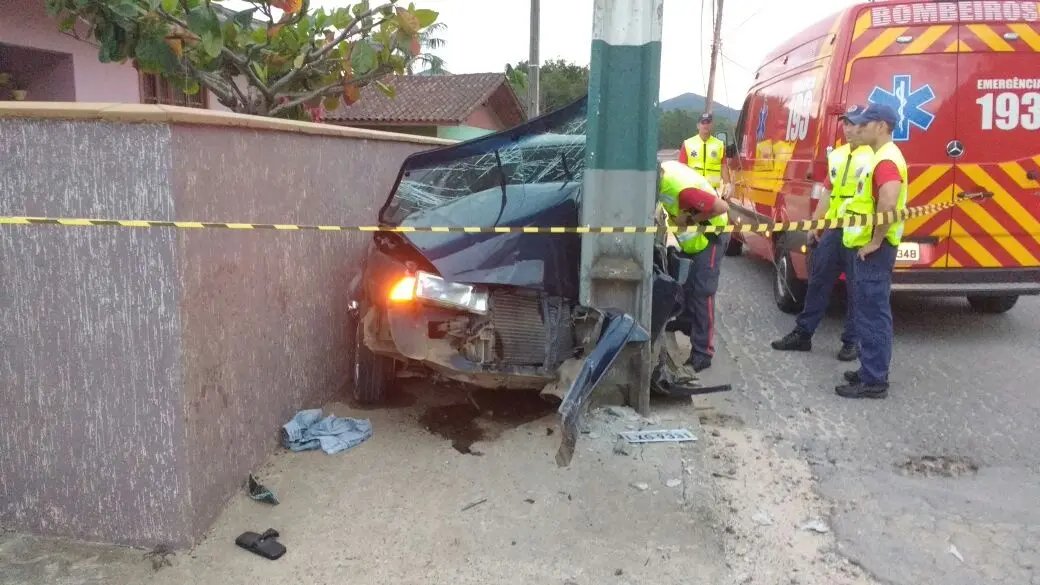 A informação que foi repassada para os bombeiros era que havia uma vítima presa no interior do veículo. Quando a guarnição chegou ao local, encontrou o Santana, cor azul, placas de Brusque, sob a calçada com danos materiais. Os bombeiros também perceberam fios de energia elétrica próximo ao carro. O que mais chamou a atenção, é que no interior do veículo não tinha ninguém. Pela imagem de como ficou o carro, é difícil acreditar que o motorista não ficou ferido com a colisão.