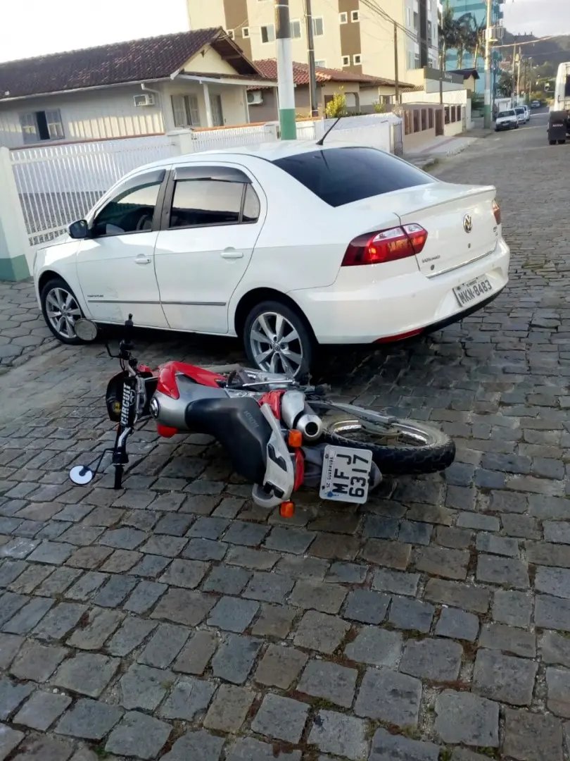 Um acidente de trânsito envolvendo carro x moto, foi registrado por volta das 18h desta quarta-feira (22) na rua Pomerode, bairro Santa Rita.