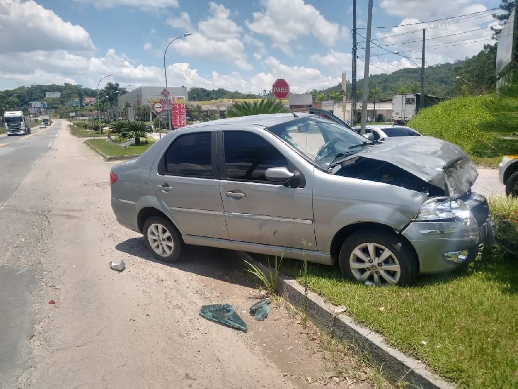 A colisão envolveu dois veículos. Um VW/ Voyage do município de Gaspar e um veículo Fiat/Siena de Brusque. A vítima foi encaminhada ao hospital Azambuja em Brusque.