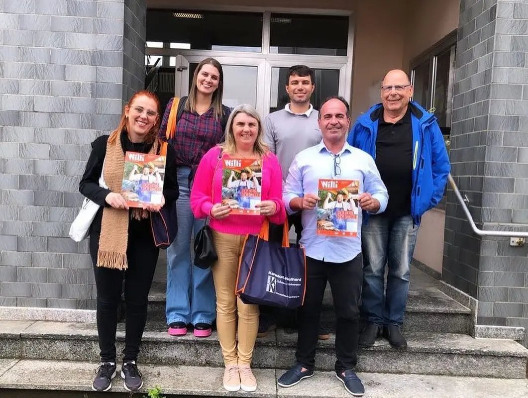 No último domingo (24) uma comitiva da Prefeitura de Guabiruba embarcou para a cidade co-irmã Karlsdorf-Neuthard, na Alemanha. Estão lá para cumprimento de agenda o prefeito Valmir Zirke, a primeira-dama Wiliane Zirke, a secretária de Meio Ambiente Bruna Ebele, o fiscal de obras, posturas e meio ambiente Edemar Kaust e a superintendente da Fundação Cultural Jenifer Schlindwein.