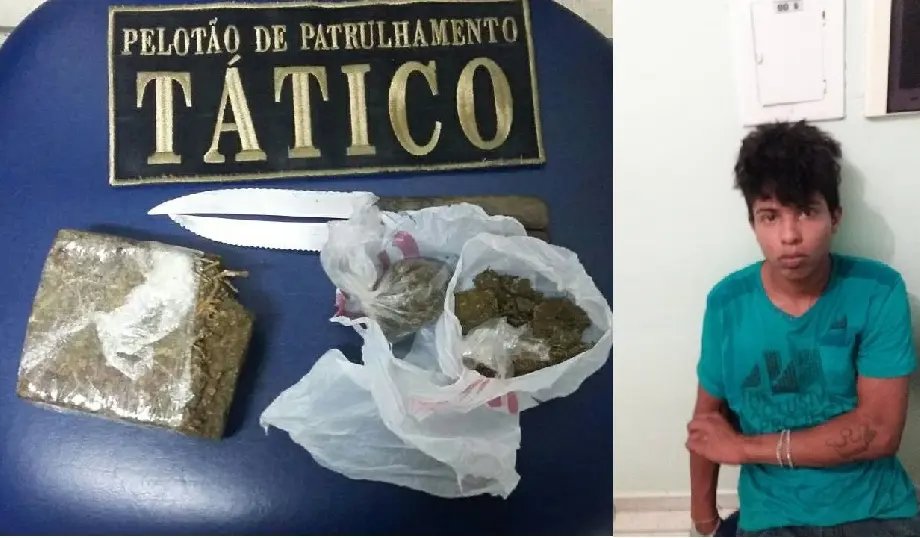 Na abordagem os policiais encontram uma sacola que continha duas buchas de maconha além de cocaína. O PPT também encontrou no banheiro do posto, dentro da lixeira, uma sacola plástica com um tijolo de substância semelhante a maconha pesando 251 gramas.