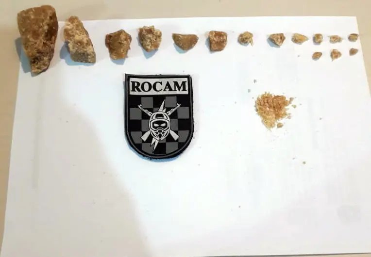 O homem, de 19 anos de idade, tentou resistir aos comandos da guarnição. Em revista pessoal foram encontradas duas pedras de crack dentro da cueca. Ao ser questionado sobre possuir mais drogas o mesmo informou que na casa de seu pai, na rua Madagascar, no bairro das Nações haveria mais drogas.