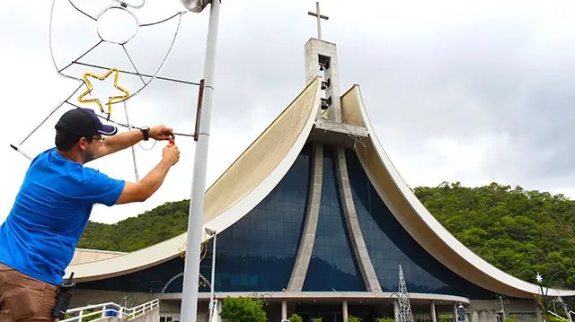 A preparação do Natal Luz Solidário continua no Santuário Santa Paulina. Nas últimas semanas começaram as instalações das luzes da decoração. Esse ano mais de 100 mil lâmpadas serão inauguradas na abertura do Natal Luz Solidário, no dia 8 de dezembro, a partir das 20h.
