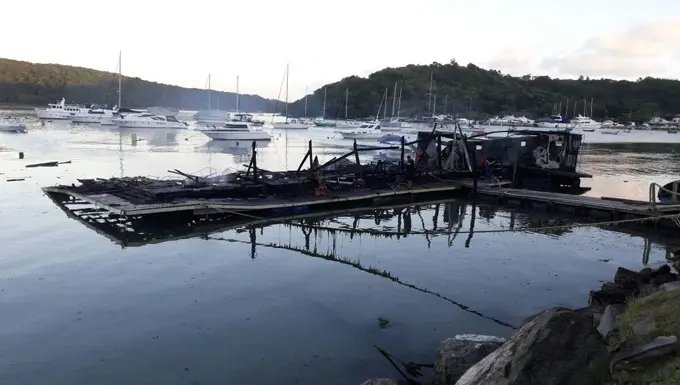 O famoso bar flutuante lozalizado próximo a localidade do Araça em Porto Belo foi destruído pelas chamas na madrugada de quinta-feira (1).