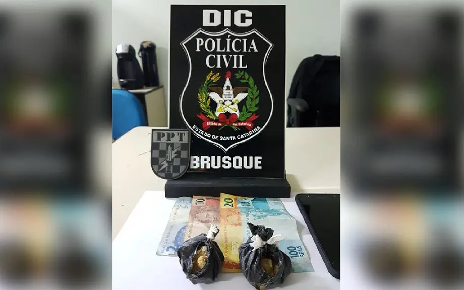 Dessa forma, a equipe da DIC localizou o veículo na rodovia Antônio Heil e efetuou a abordagem com apoio do Pelotão de Patrulhamento Tático do 18º Batalhão de Polícia Militar, próximo ao trevo da Aradefe. No interior do veículo foram localizadas duas embalagens pesando cada uma aproximadamente 30g de substância semelhante a crack.