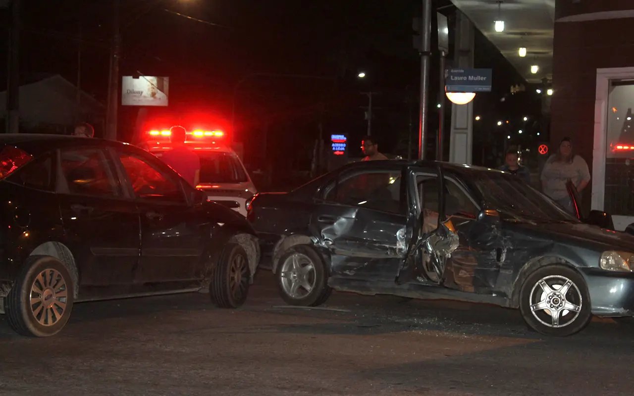 Um acidente foi registrado no início da madrugada deste domingo (21) no cruzamento da avenida Getúlio Vargas com a avenida Lauro Muller, Centro II, em Brusque. Um veículo Honda Civic LX, cor azul, placas de Bom Retiro (SC) foi atingido lateralmente por um Ford Focus de cor preta, placas de Brusque. No local há um semáforo que organiza o trânsito no local, mas naquele horário ele estava intermitente. O motorista do Civic fazia a convesão à esquerda quando foi atingido pelo Focus que seguia no sentido contrário.
