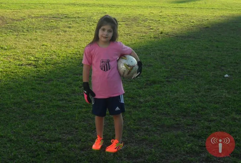 Com sete anos de idade, Maria Júlia é goleira e iniciará a prática de seu esporte favorito na semana que vem. Primeira inscrita na escolinha do clube, a garota tem como ídolo o goleiro da seleção brasileira na Copa do Mundo, Júlio César. As atividades serão comandadas pela professora Jéssica Rothermel Bretzke.