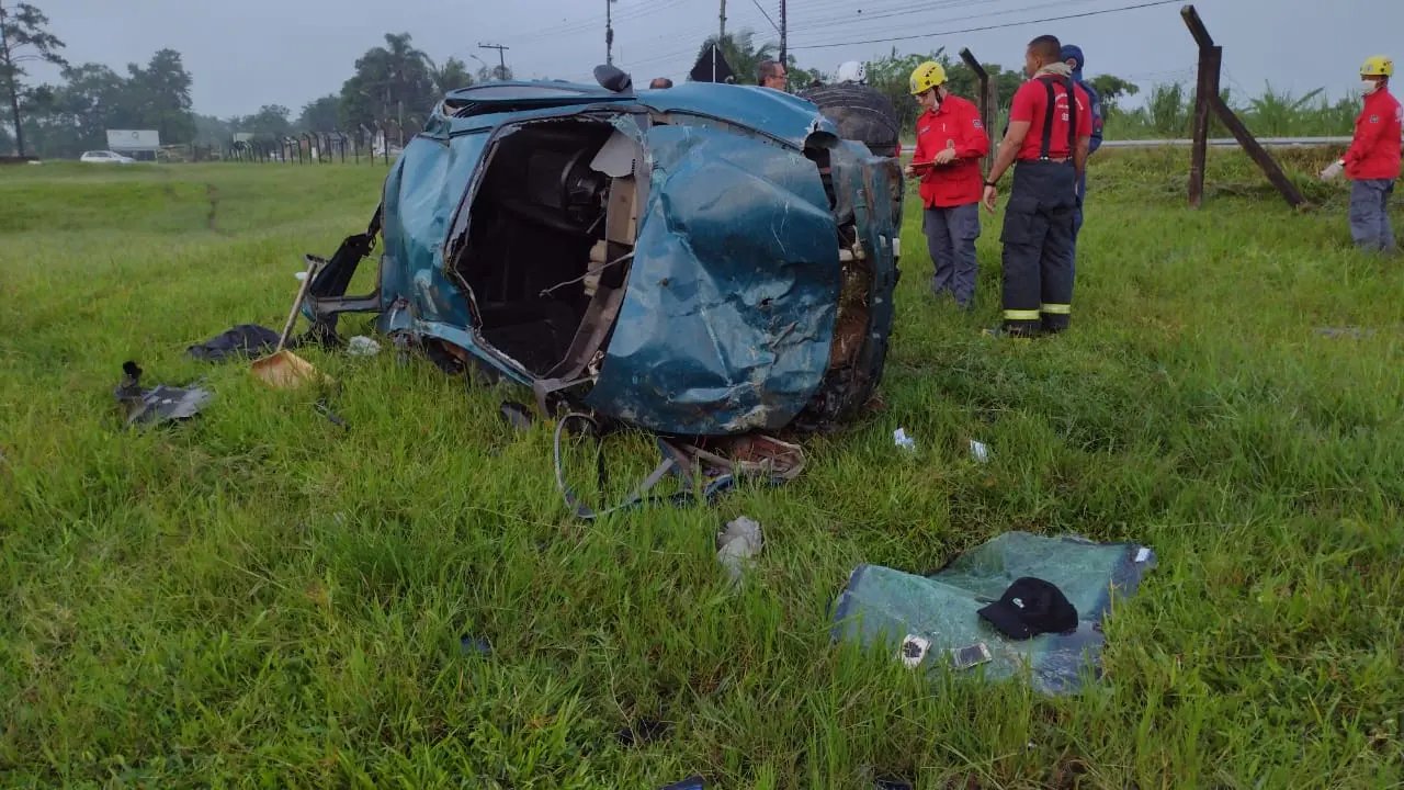 O veículo, um Celta com placas de Gaspar, saiu da pista e capotou na Rodovia SC 412, (Rodovia Jorge Lacerda), entre Ilhota e Itajaí, na manhã deste sábado (05), por volta das 5h30 e deixou dois homens em estado grave e um outro morto, no local.