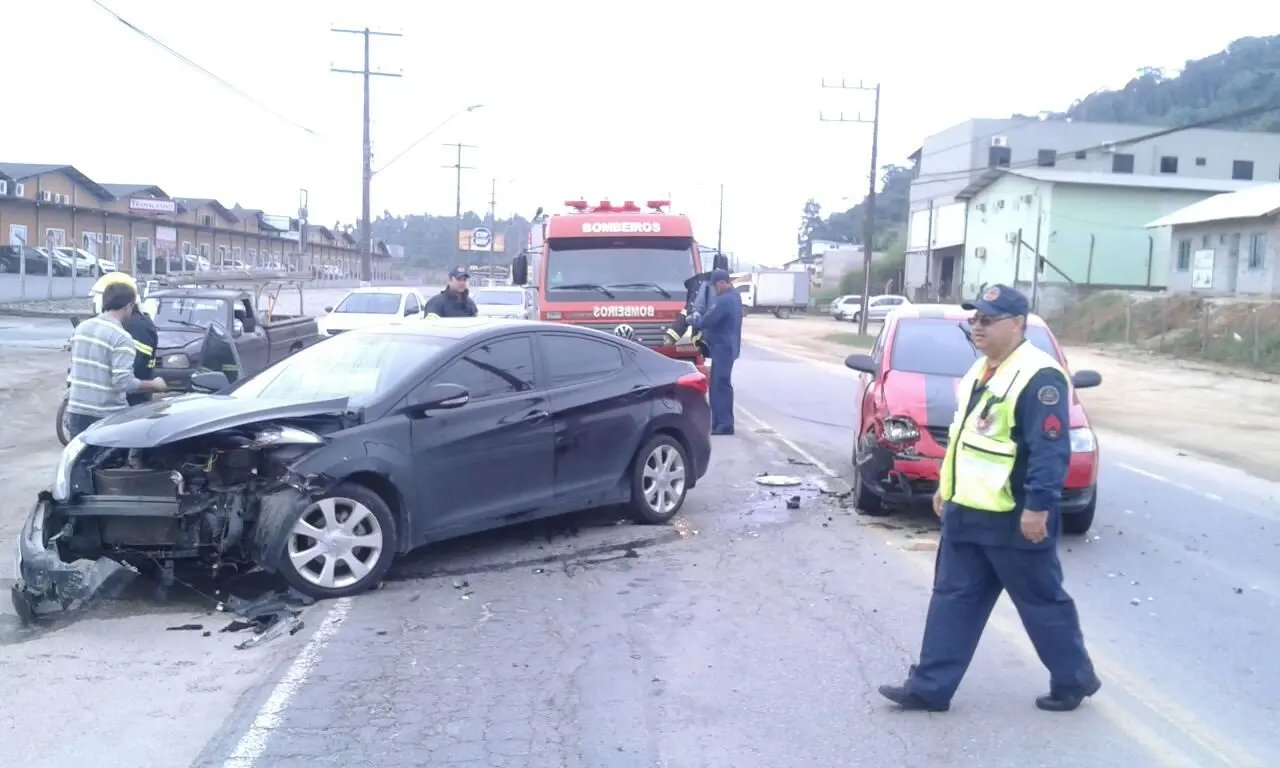 Dois carros se chocaram na Rodovia Ivo Silveira na manhã desta sexta-feira (1º). O acidente aconteceu por volta de 8h40min, na região do Bairro Batêas, próximo ao acesso à Rua Edgar Von Buettner. A colisão envolveu um Fox, com placas de Brusque, e um Hyundai Elantra, com placas de São João Batista.