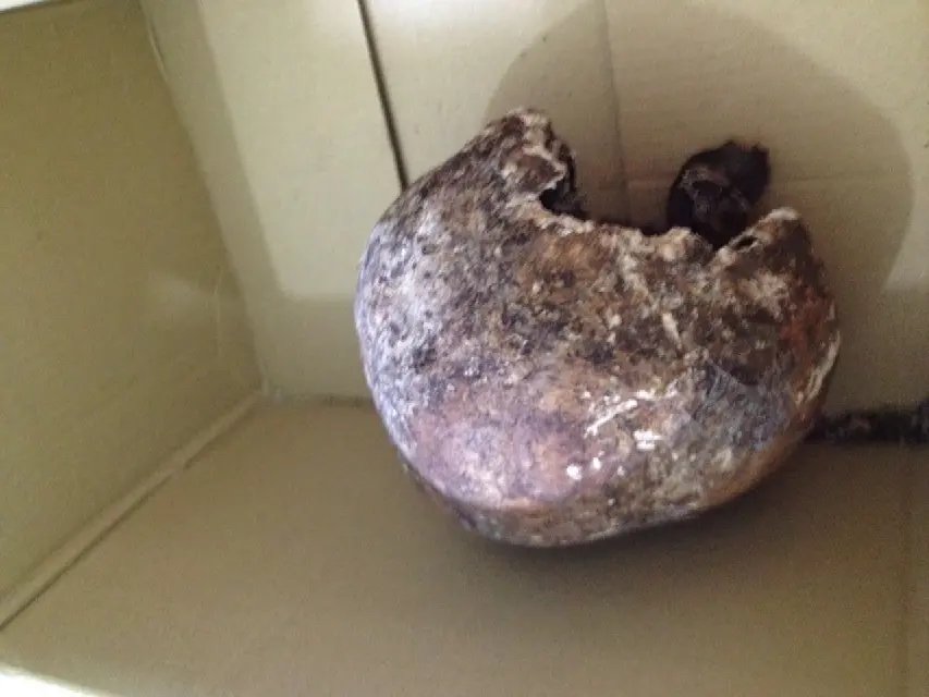 De acordo com informações da PM, uma viatura que fazia rondas pela localidade foi acionada por um funcionário local, pois ele havia visto o crânio. Os policiais verificaram e constataram que se tratava mesmo de um crânio com partes quebradas.