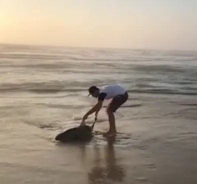 (VÍDEO) Homem salva tubarão com as próprias mãos