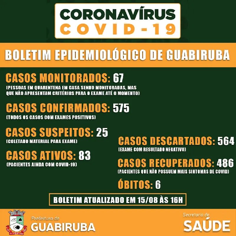 Guabiruba confirma novo caso de covid-19 em homem de 24 anos