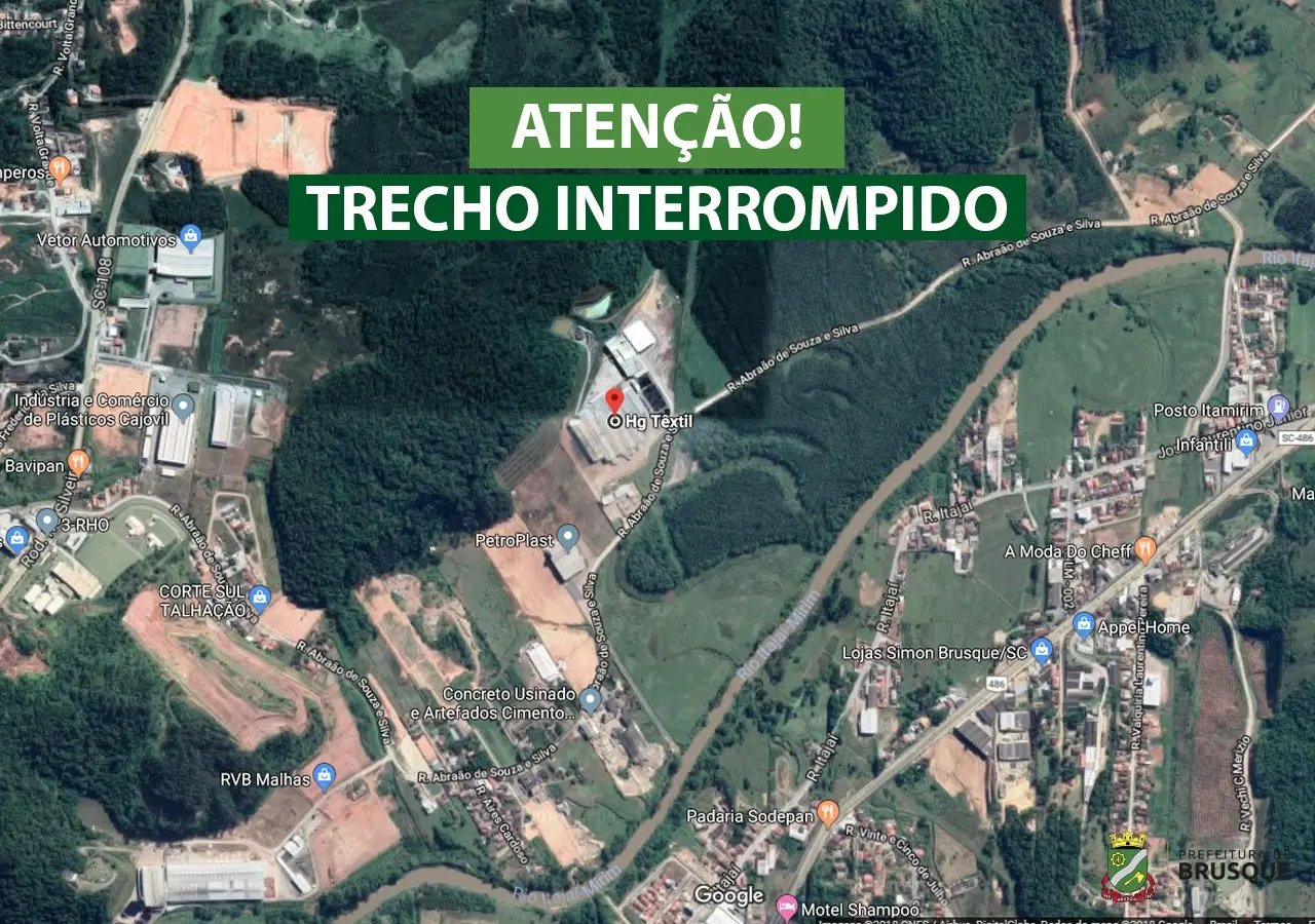 A Prefeitura de Brusque, por meio do Departamento Geral de Infraestrutura (DGI), informa que, em decorrência das chuvas das últimas horas, procederá com a interdição de parte da rua Abraão de Souza e Silva, entre os bairros Limoeiro, Volta Grande e Bateas. No local, ocorrem as obras de revitalização, drenagem e pavimentação da popular “Estrada Geral da Fazenda”.