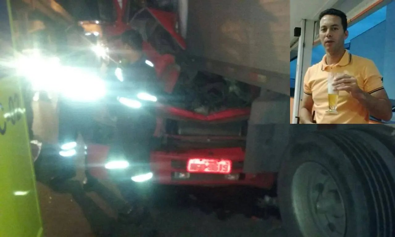 Rudinei Lemes, morador do bairro Bateas, que dirigia o caminhão placas de Brusque, colidiu na traseira de outro caminhão que pertence a mesma transportadora, com o impacto o motorista faleceu na hora.