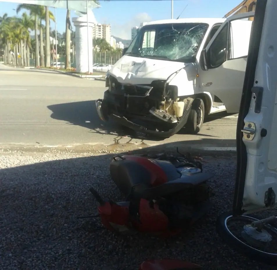 Com o choque entre os dois veículos, tanto o furgão como a motoneta ficaram bastante destruídos. A parte frontal da Honda Biz ficou bastante danificada, inclusive com a roda se soltando. Já o furgão ficou com a frente bastante destruída, bem como o para-brisas, que por pouco não estourou.