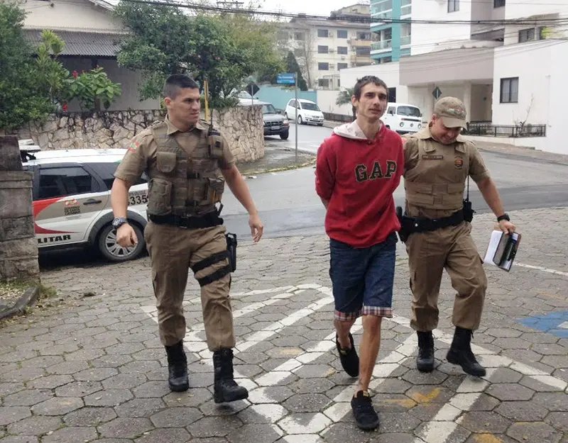 A Polícia Militar de Brusque conduziu na manhã desta sexta-feira (19) até a Delegacia de Polícia Civil, Paulo Roberto Nunes (23) suspeito de ter furtado uma motocicleta. A denúncia do furto partiu de conhecidos do suspeito, que estranharam Paulo Roberto aparecer com uma moto na residência, no Loteamento Planalto em que ele estava pernoitando de favor.