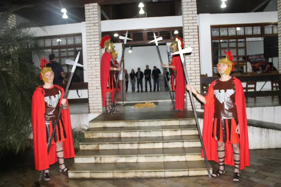 Com as entradas demarcadas por soldados romanos, os convidados para o lançamento do 21º Espetáculo Paixão e Morte de Um Homem Livre tiveram uma noite diferente na Sociedade Recreativa Guabirubense. O lançamento oficial do evento, que ocorre em abril de 2017, aconteceu por volta das 19h30min desta quarta-feira (16).