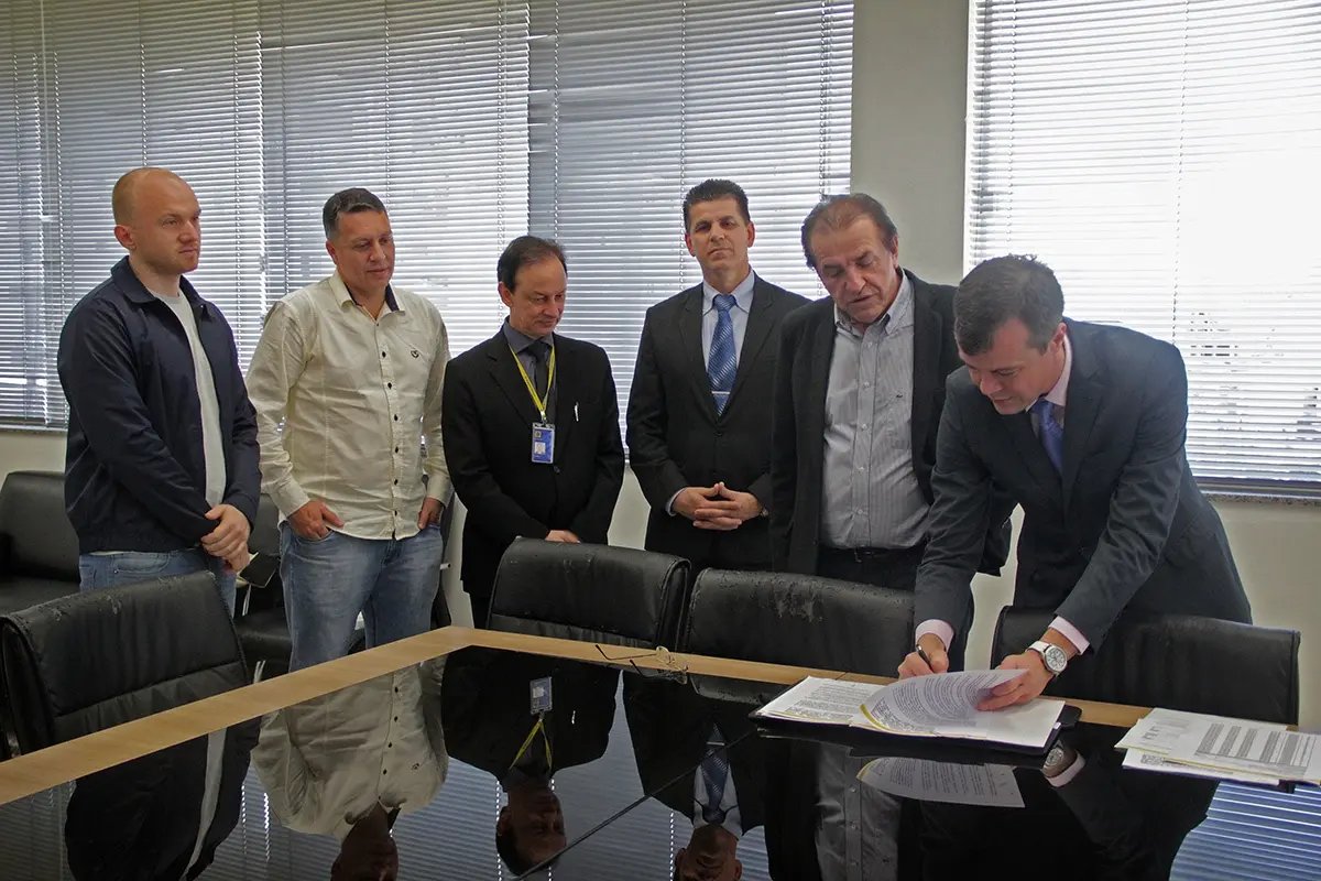 Além do prefeito de Brusque, José Luiz Cunha, o Bóca, também participaram do encontro, o secretário de Orçamento e Gestão, Rogério Lana, e o contador da pasta, Cristiano Bittencourt. O documento prevê o refinanciamento de uma dívida do ano de 1999, que atualmente, apresentava um saldo devedor de cerca de R$ 20 milhões.