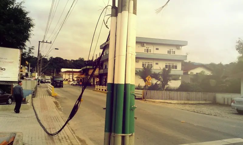 Ocorre que na última sexta-feira (13), o caminhão, ao sair do pátio daquela igreja, levou consigo grande quantidade de fios telefônicos, responsável pelas linhas de vários moradores da região. Desde aquele dia, não houve nenhum reparo sequer. Foi um caminhão que foi virar uma volta, entrou no pátio e, com certeza, tinha uma carga mais alta e deixou tudo no chão, pontua.