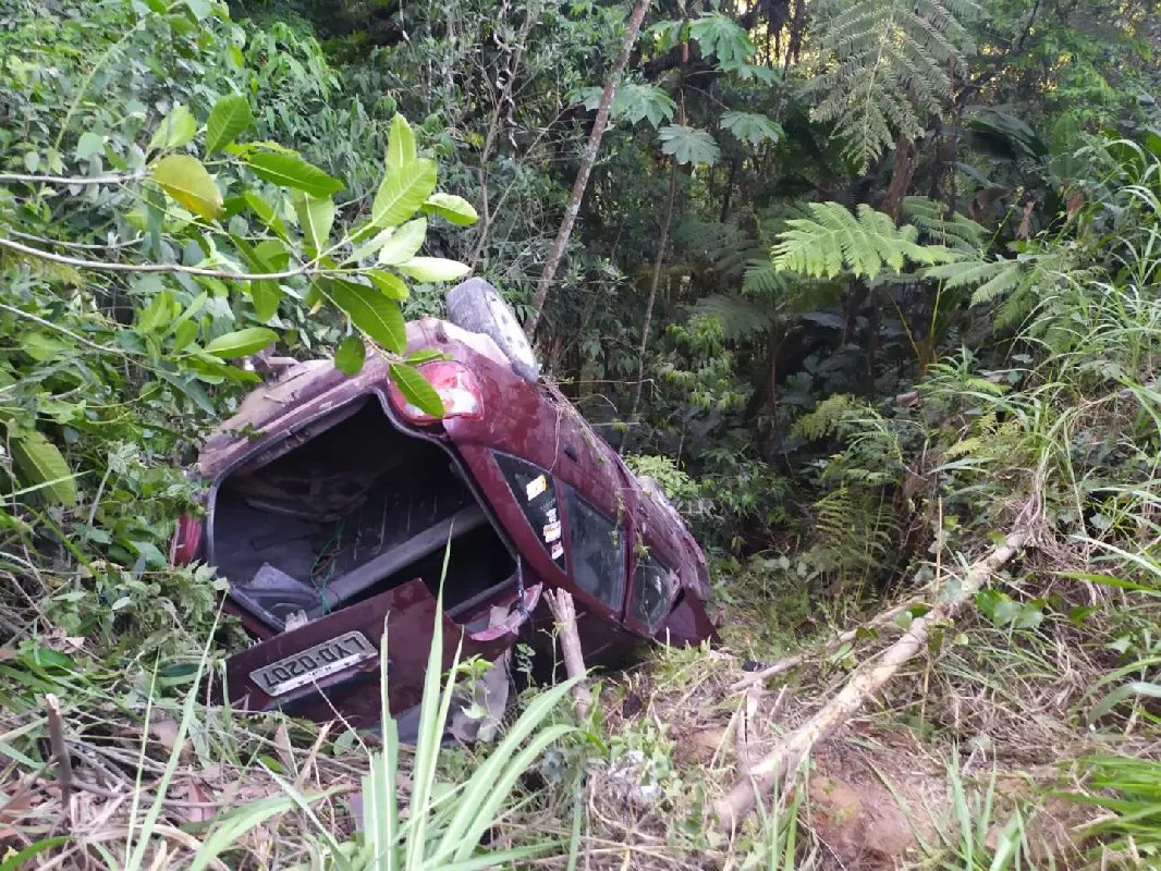 Carro capota e cai em ribanceira próximo a cachoeira