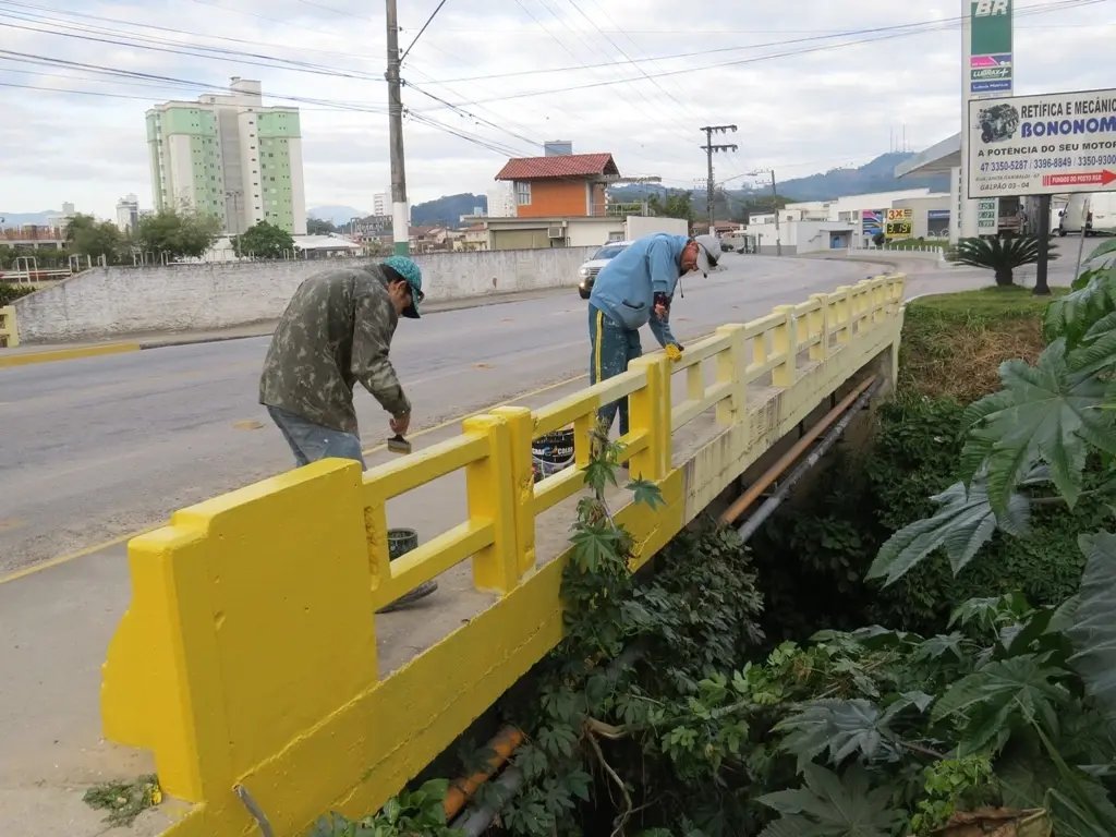 Os servidores do órgão já iniciaram as intervenções na Ponte do Trabalhador, no Bairro Santa Rita e na ponte da Rua Blumenau, nas proximidades do posto Azza. As duas passagens terão os guarda-corpos pintados com amarelo e sua sinalização interna com faixas em preto e branco.