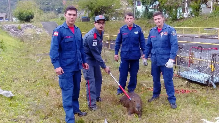 Segundo informações do Corpo de Bombeiros Militar de Brusque, que atendeu à ocorrência, o animal foi salvo após ficar preso em um reservatório de tratamento de rejeitos químicos no Bairro Bateas.