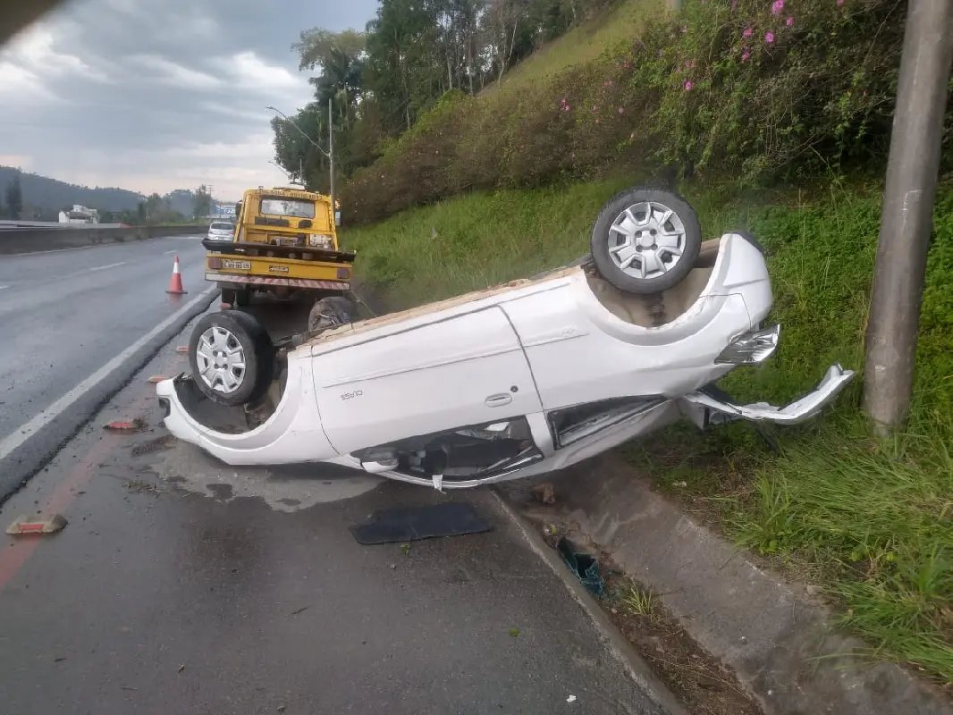 Um veículo Ford Ka, placas de Itajaí, saiu da pista e capotou na tarde deste sábado (11) na Rodovia Antonio Heil, bairro Limoeiro, em Brusque. O acidente foi registrado por volta de 13h40.