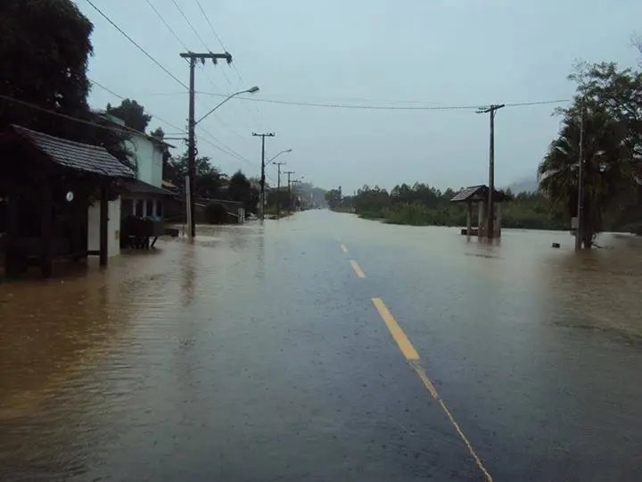 Rodovia A-110-A KM 1.700, no município de Timbó água na pista em ambos os sentidos rodovia interditada.