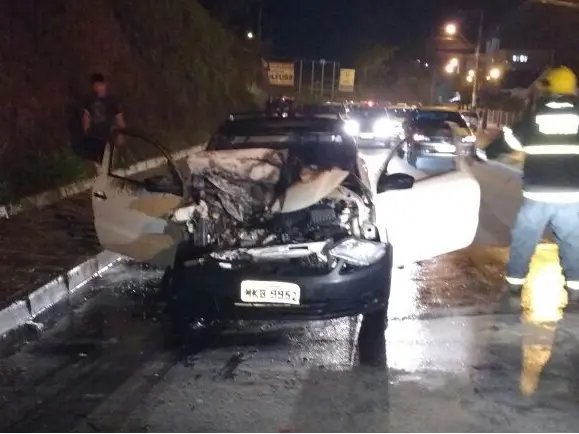 Na noite deste domingo (24), por volta das 19h, três veículos colidiram em um acidente de trânsito ocorrido na Rua Azambuja, Bairro de mesmo nome. Após a batida, um deles pegou fogo e ficou totalmente destruído.