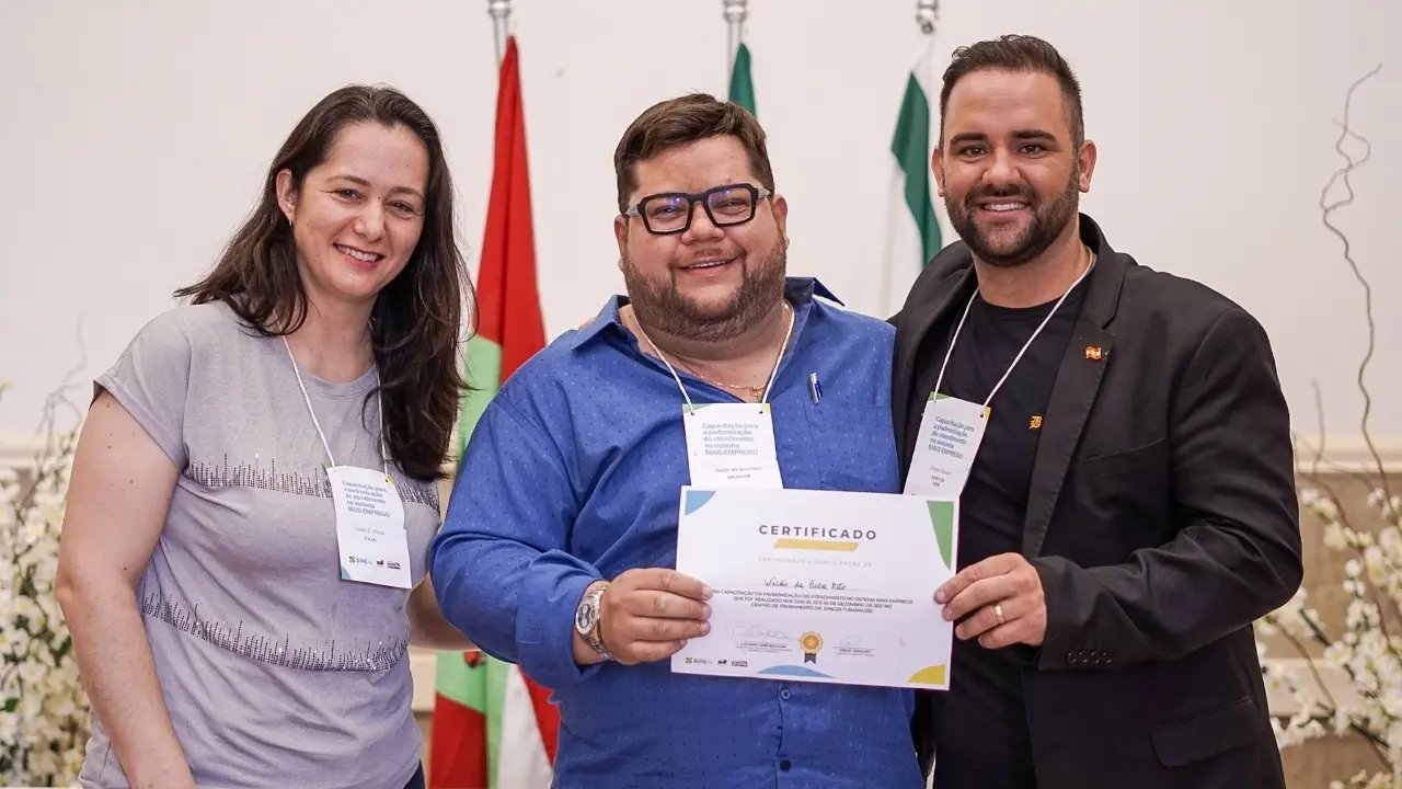 A Secretaria de Estado do Desenvolvimento Econômico Sustentável (SDE), por meio do Sistema Nacional de Emprego (Sine), realizou entre os dias 1º a 03 de dezembro uma capacitação referente à padronização do atendimento no portal Mais Emprego, sistema informatizado do Governo Federal que integra as políticas de trabalho, emprego e renda, e a política de qualificação profissional. O diretor do Sine de Brusque, Waldir da Silva Neto, participou do treinamento, além de mais de 70 pessoas de 30 cidades.