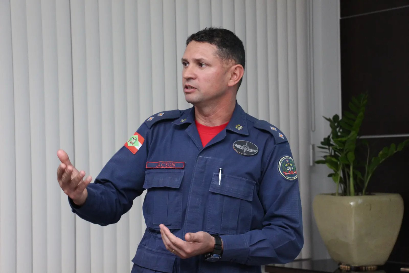 O Tenente do Corpo de Bombeiros de Brusque, Jacson Luiz de Souza, participou da reunião de diretoria da Associação Empresarial de Brusque (ACIBr), na tarde desta segunda-feira, 23 de julho. Na oportunidade, ele falou sobre o número de efetivo na corporação, os investimentos feitos nos últimos anos e a transição dos recursos do Fumrebom.