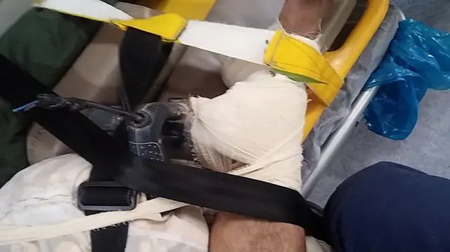 A vítima apresentava laceração, hemorragia e fratura exposta na perna direita (tíbia/fíbula). Conforme os Bombeiros a serra mármore "makita" ficou pressa na perna da vítima. Assim, após os primeiros socorros o homem foi imobilizado e conduzido ao Hospital Azambuja.