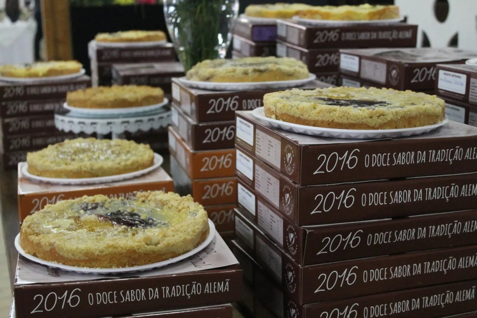 A venda de cucas também já está acontecendo desde as 10h, com várias opções de sabores, e também de panificadoras diferentes, todas participantes do Núcleo de Panificadoras de Brusque e região, que funciona através da Associação Empresarial de Brusque (ACIBr).
