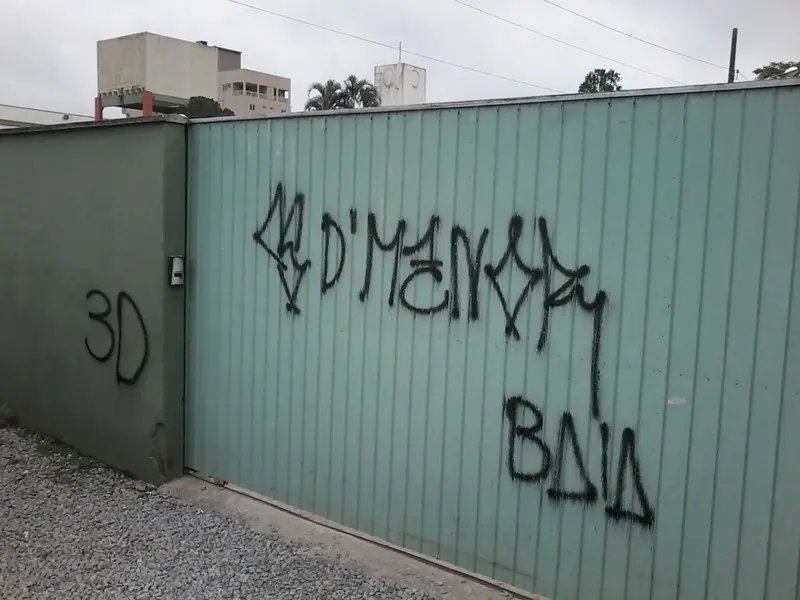 As imagens abaixo são da Escola de Educação Básica Santa Terezinha e, também, da Escola de Educação Básica Osvaldo Reis, ambas de Brusque. Cerca de dois meses se passaram desde que ocorreram as pichações e ainda não foi possível reparar os prejuízos no primeiro colégio citado. Os rabiscos insolentes feitos com tinta spray preta estão distribuídos por várias partes desde o portão da garagem, até o segundo piso da edificação da instituição de ensino.