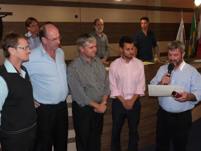 passagem dos 150 anos da comunidade Luterana em Brusque foi lembrada na sessão da Câmara Municipal nesta terça-feira (16). Homenagem feita pelo presidente da Casa, Guilherme Marchewski (PMDB), em discurso na tribuna. Ato finalizado com a entrega de um diploma alusivo à comemoração e entregue a representantes dos luteranos que estavam presentes na reunião.