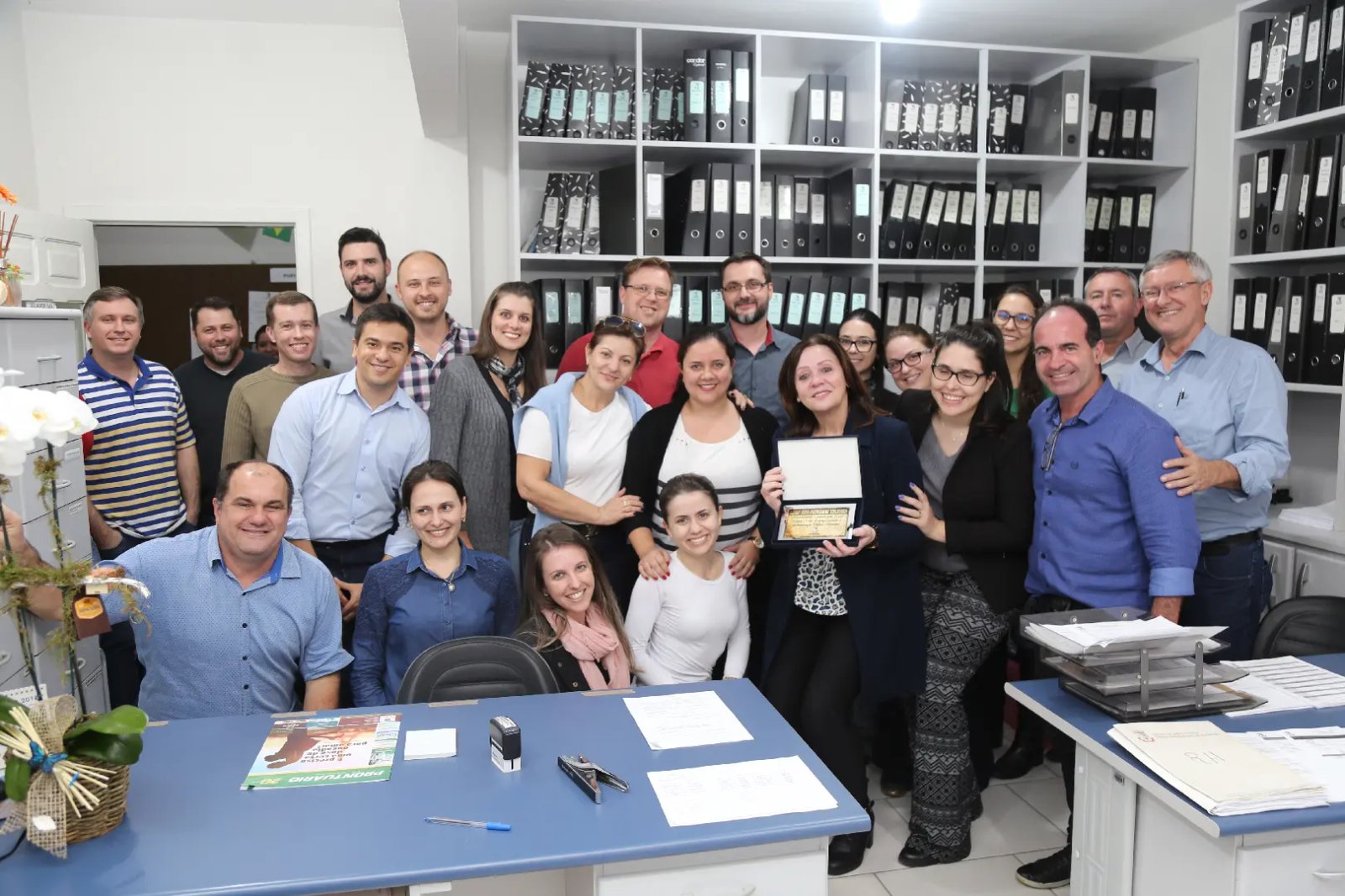 Trinta e um anos, dois meses e quatro dias. O período gravado em uma placa e entregue a Elizabet Maria Heiderscheidt Schlindwein (Bete) na última quinta-feira, 28, representou o agradecimento do município à servidora pelos trabalhos prestados à administração pública por mais de três décadas. Aos 55 anos, Elizabeth deixa o posto de funcionária mais antiga do Poder Executivo ao aposentar-se. Além da placa e flores, a funcionária recebeu o abraço dos colegas e o reconhecimento do prefeito Matias Kohler e do vice Valmir Zirke. “Depois dessa trajetória, fica o exemplo de dedicação e esforço ao serviço público em um momento que são cada vez mais raras as histórias de vínculos tão longos com o mesmo ambiente de trabalho”, enfatizou o prefeito.