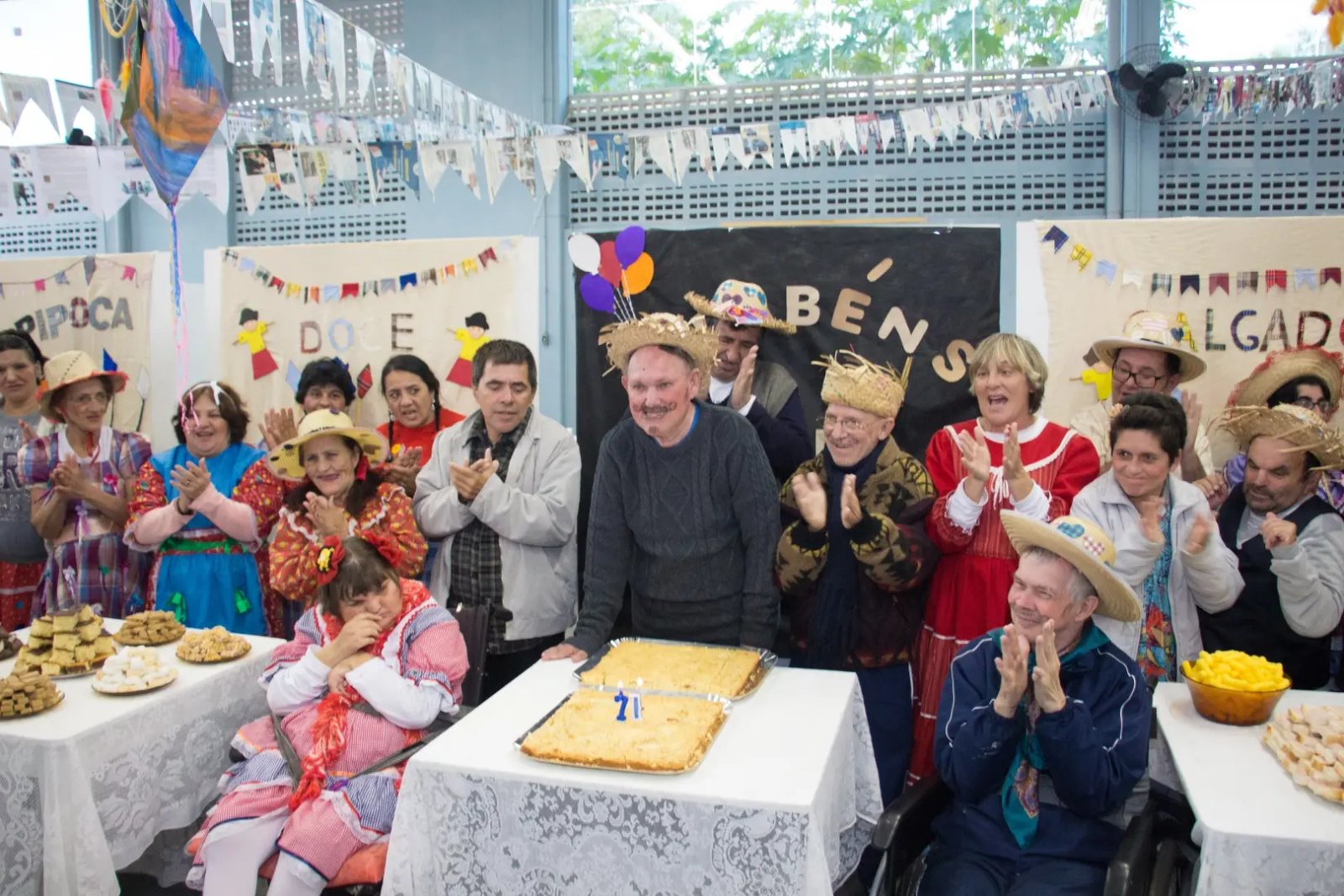 O tema escolhido para a festa foi o junino, e o Cecon foi totalmente decorado para a data. Pierri é o aluno mais antigo da Apae de Brusque. A instituição foi fundada por seus pais, dr. Carlos Moritz e dona Ruth de Sá Moritz em setembro de 1955, justamente com o objetivo de oferecer um atendimento especializado a crianças como o Pierri, e trabalhar a inclusão social. “São 71 anos que ele completa hoje com muita saúde e ensinando para todos nós muita coisa. Ele gosta do aniversário dele porque as pessoas o cumprimentam, telefonam para ele, é um momento especial. E a ideia de fazer a festa aqui é porque os amigos dele estão aqui, é o local que ele vem todos os dias, que ele adora vir, aliás”, comenta a irmã, Maria Tereza Moritz Montibeller.