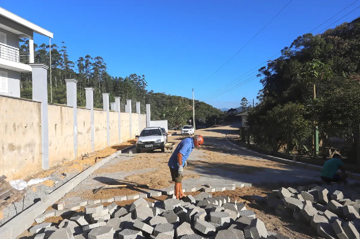 A obra de pavimentação da Rua Antonio Fischer já está concluída em mais da metade. Dos mais de 2 mil metros de extensão da via que liga o Bairro São Pedro ao Centro de Guabiruba, mil já foram pavimentados.