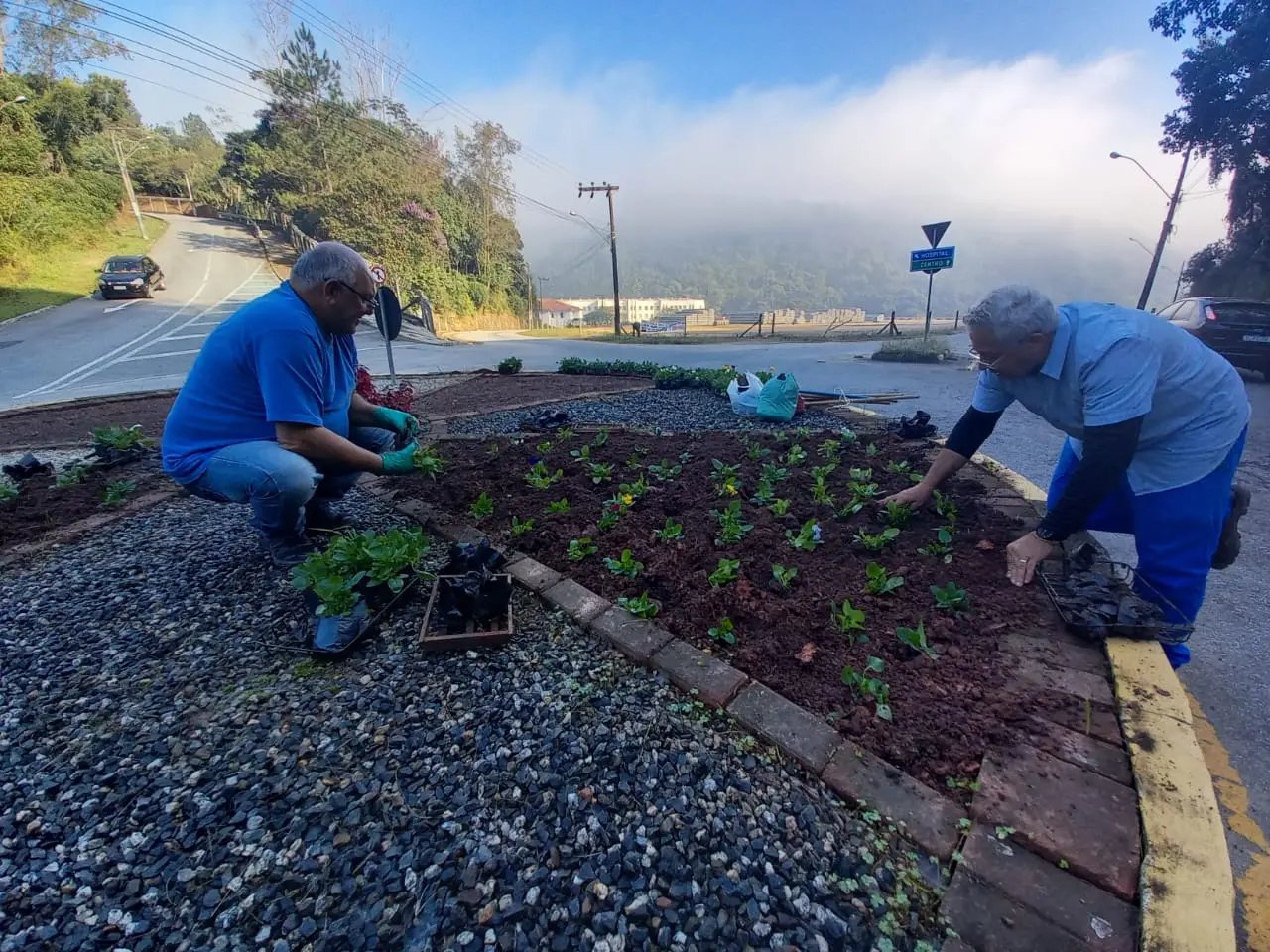 Roçada, plantio de flores e limpeza rua Santos Dumont – Santa Terezinha