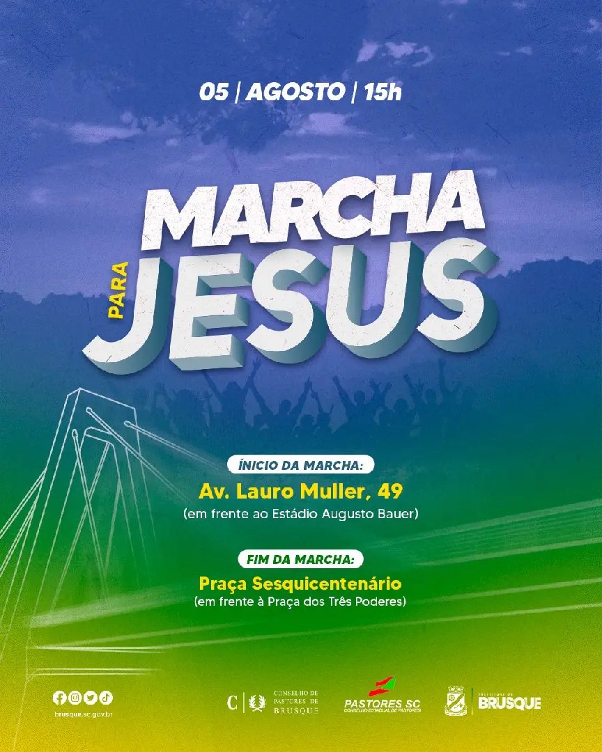 Brusque se prepara para receber a Marcha para Jesus, evento religioso e cultural que integrará a programação dos 163 anos do município. Agendada para o dia 5 de agosto, às 15h, o evento promete reunir fiéis de diversas denominações em um percurso emocionante pelas ruas da cidade.