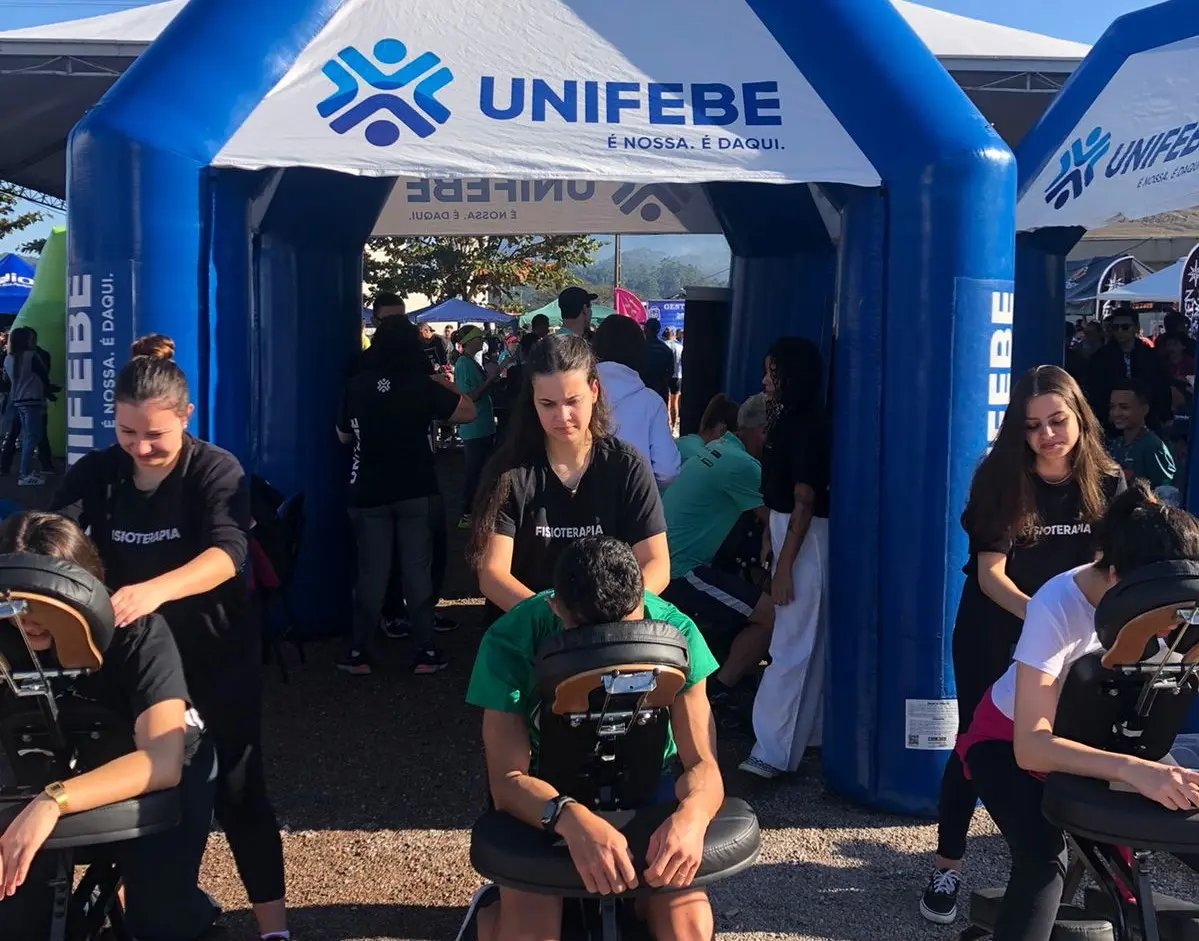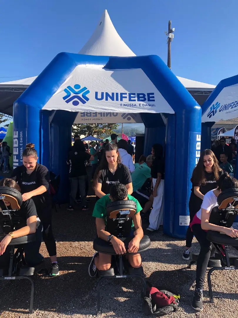 Os atletas da corrida Santos Dumont – BHM Run 2023, realizada em Brusque no dia 25 de junho, foram recepcionados pelos acadêmicos da UNIFEBE, logo após a linha de chegada. Os estudantes dos cursos de Educação Física e Fisioterapia da instituição receberam os participantes com uma série de ações voltadas à saúde.