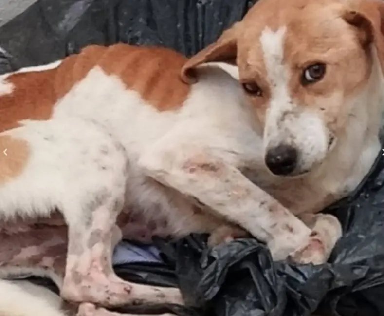 Durante o cumprimento do mandado foi localizado um cachorro dentro de um quarto sem água e alimentos, o animal estava bastante debilitado, muito magro, sendo que mal conseguia ficar em pé.
