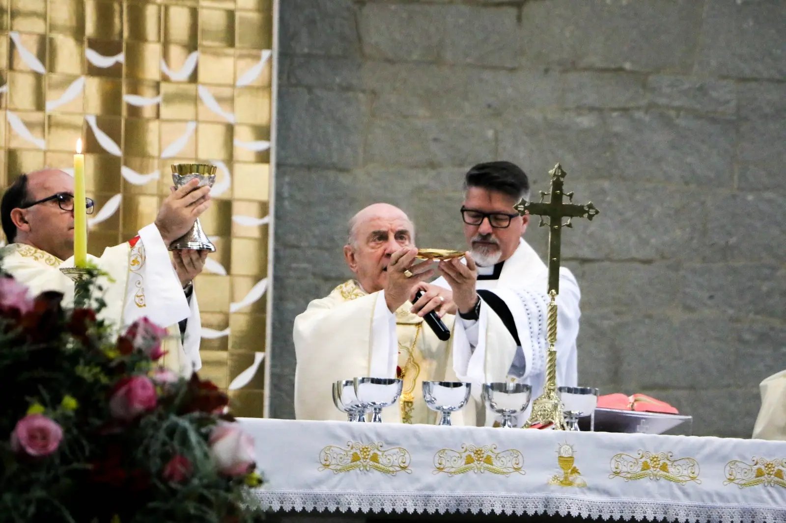 O Bispo Emérito, Dom Murilo Sebastião Ramos Krieger, presidiu a missa de ação de graças. Para ele, são várias as circunstâncias que tornam a celebração ainda mais significativa. “Além de ser brusquense, sou religioso dehoniano e a maior parte da história do Colégio está ligada à Congregação dos Padres do Sagrado Coração de Jesus. E também fui aluno desse colégio antes de ir para o Seminário, então, me sinto da família”, comenta.