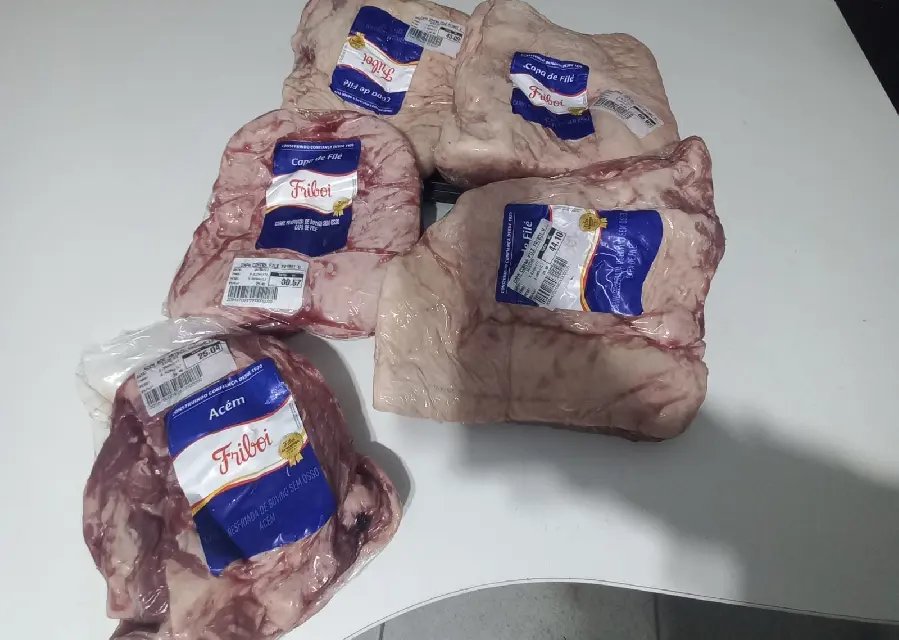 De acordo com o relatório da Polícia Militar, ao chegar ao local, a guarnição conversou com o chefe de segurança, que informou ter visto, por meio do sistema de câmeras, uma mulher colocando cinco peças de carne dentro de uma bolsa. Nesse momento ele pediu para um funcionário ficar de olho nela.