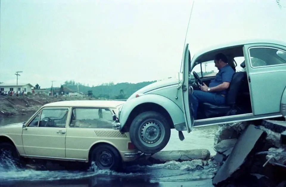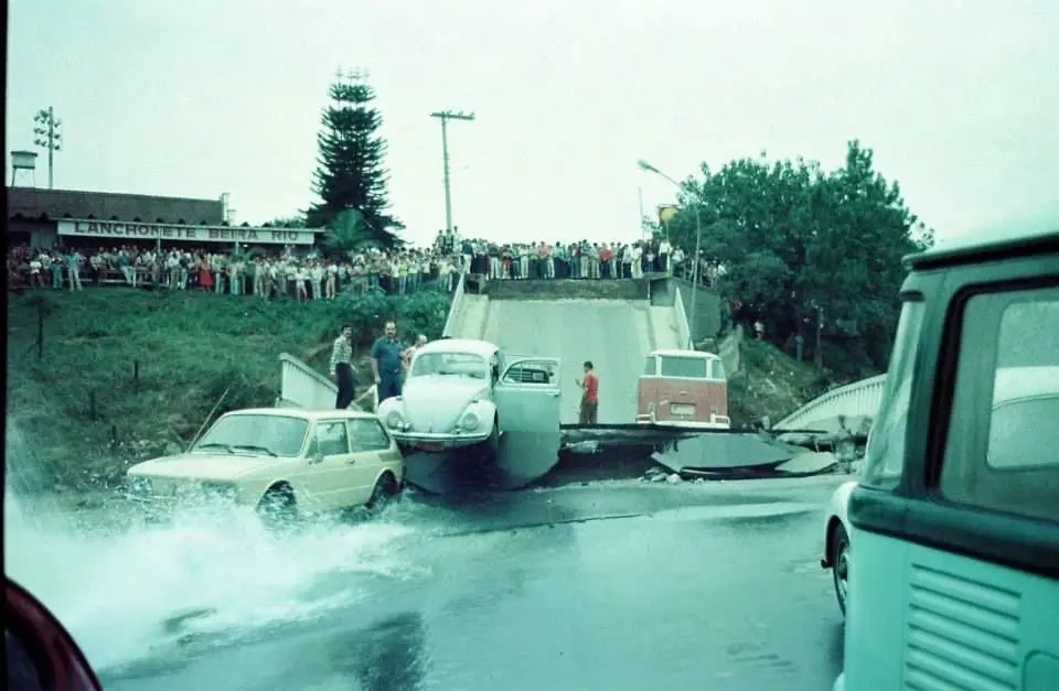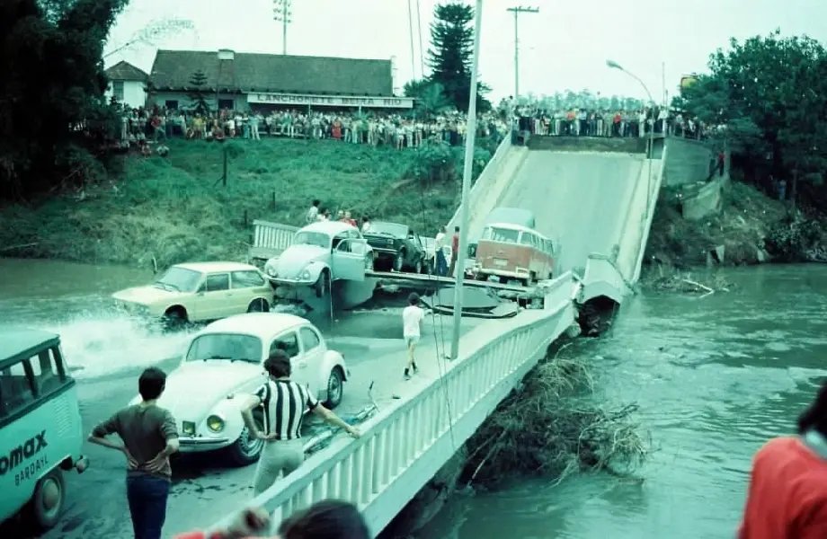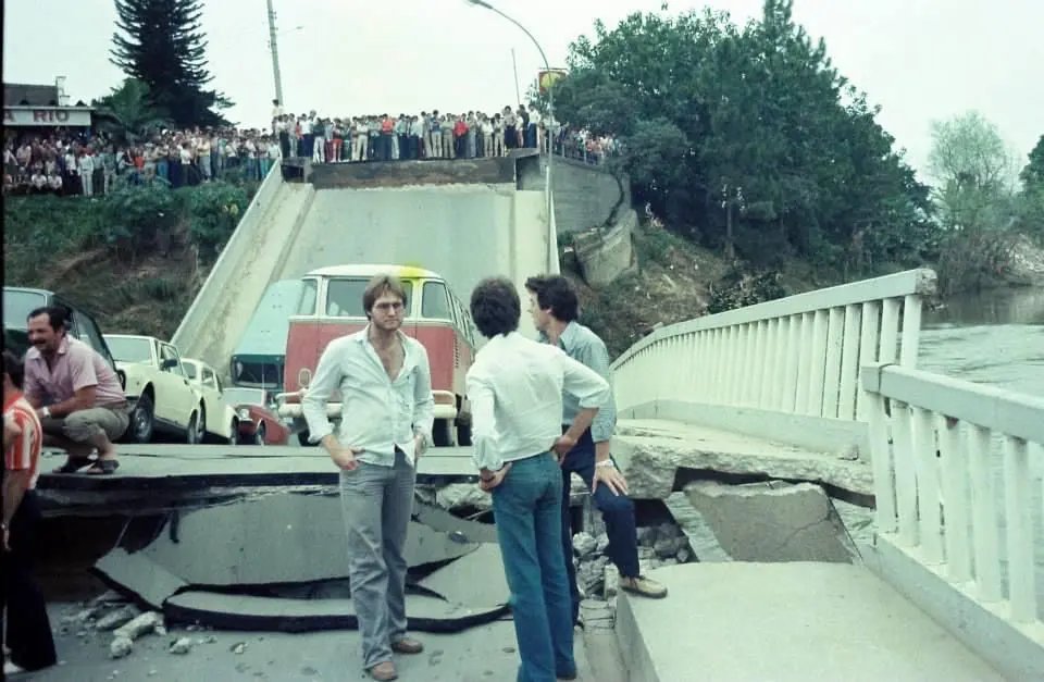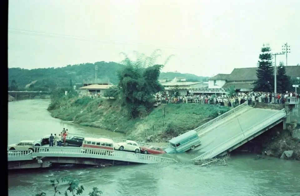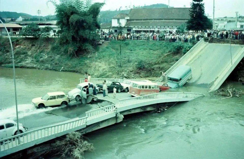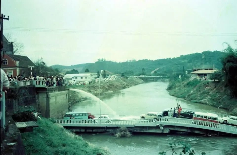 Nesta terça-feira (8) faz 43 anos da queda da ponte no Centro de Brusque, a atual Ponte Irineu Bornhausen, a Ponte Estaiada. Vários veículos estavam em cima dela no momento da queda, mas ninguém se feriu.