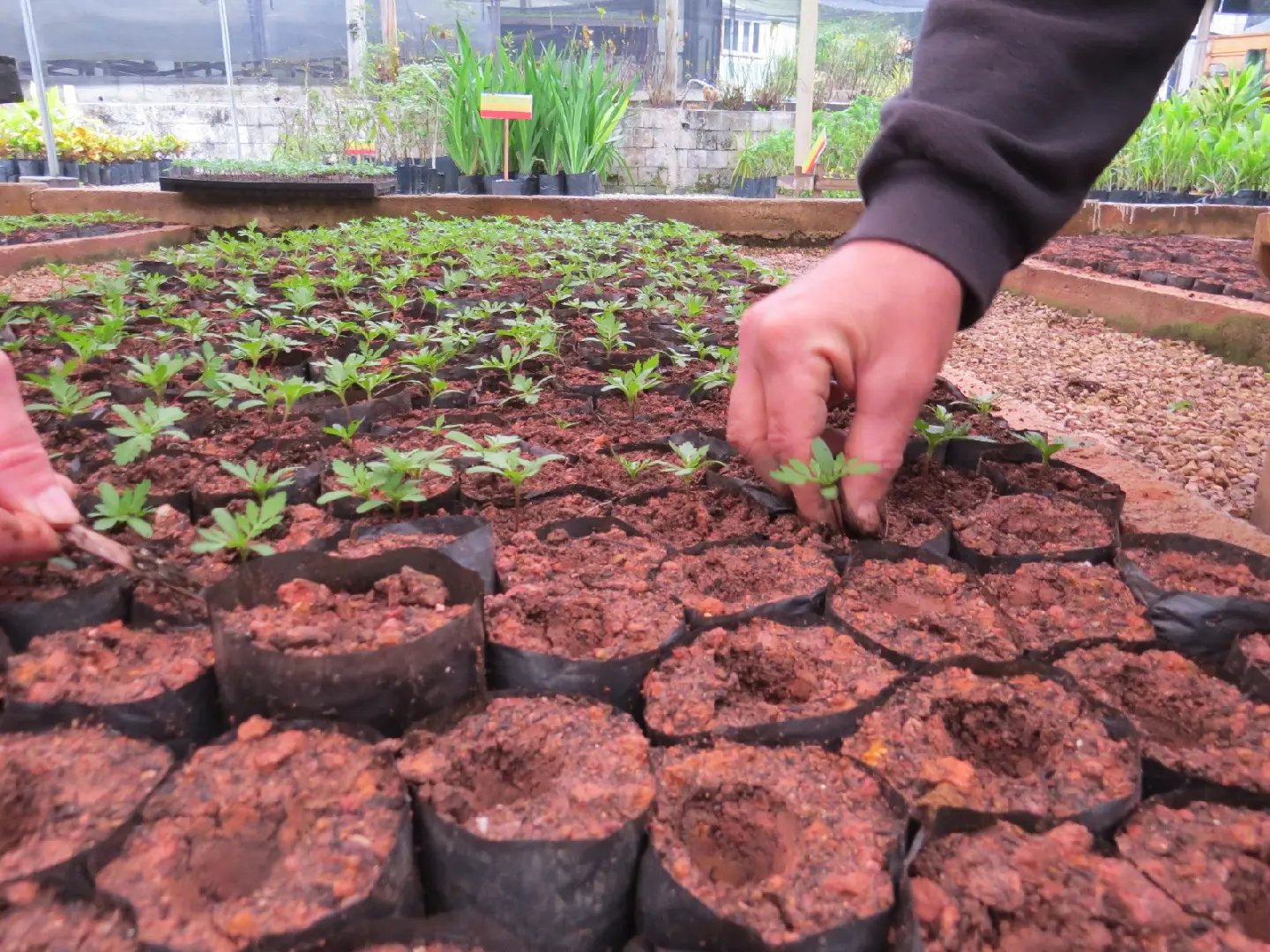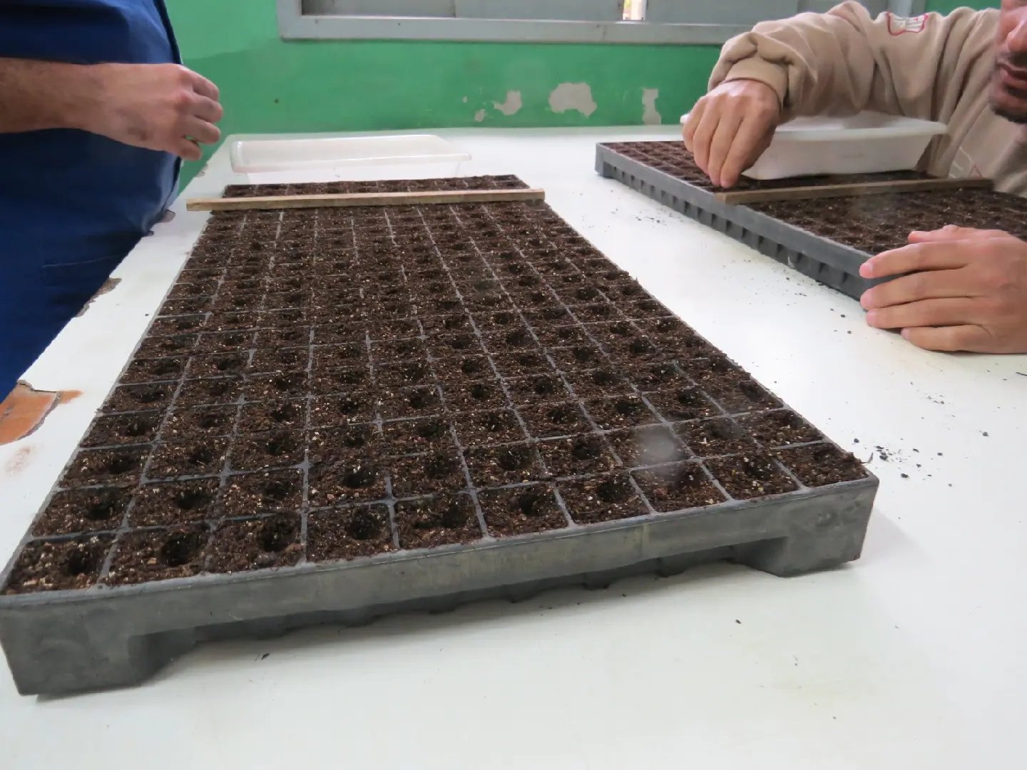 Durante esse processo, outra equipe realiza a semeadura, o processo de plantas as sementes em bandejas e posteriormente levadas a estufa. Essas bandejas permanecem por dois dias á uma semana para que ocorra a germinação.