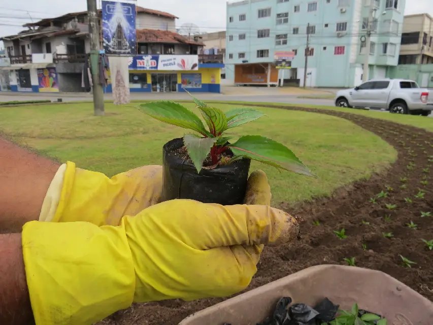 Conforme os brotos vão surgindo, são então cuidadosamente transferidos para saquinhos previamente preparados com a mistura de barro e adubos. Esse estágio leva de 15 a 30 dias para que as mudas floresçam e estejam prontas para os canteiros da cidade.